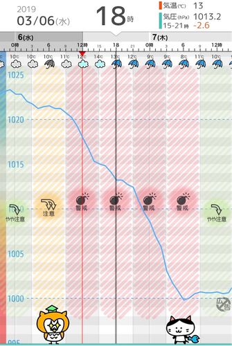 今日の午前中までは元気だったのに、夕方頃から突然にやる気が萎えて不機嫌に。 なんでだろ〜、頭も妙に痛いし…、と思ってたら気圧が下がってました。どうりで…。 頭痛ーる、お世話になってます。 まぁ今日の仕事の進捗がダメだったのも要因のひとつだとは思…
